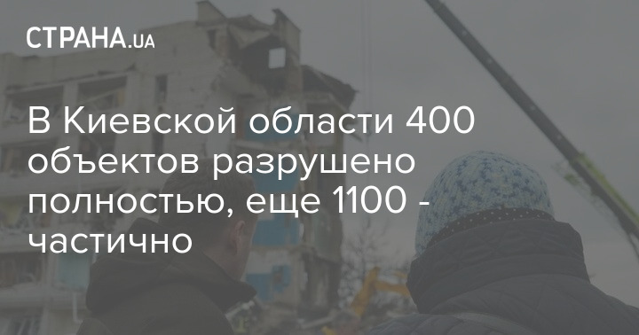 В Киевской области после российского вторжения оказались разрушенными 1500 объектов. Из них 400 - разрушены полностью.