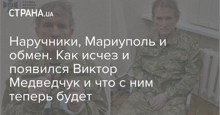 Политик был в наручниках и военной форме ВСУ не по размеру. Власти заявили, что Медведчук скрывался в Украине и собирался уйти через границу за рубеж.