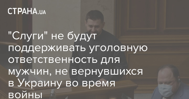 Фракция "Слуга народа" не будет поддерживать законопроект №7265 об уголовной ответственности для военнообязанных украинцев, которые в течение 15 дней не вернутся в Украину во время войны.