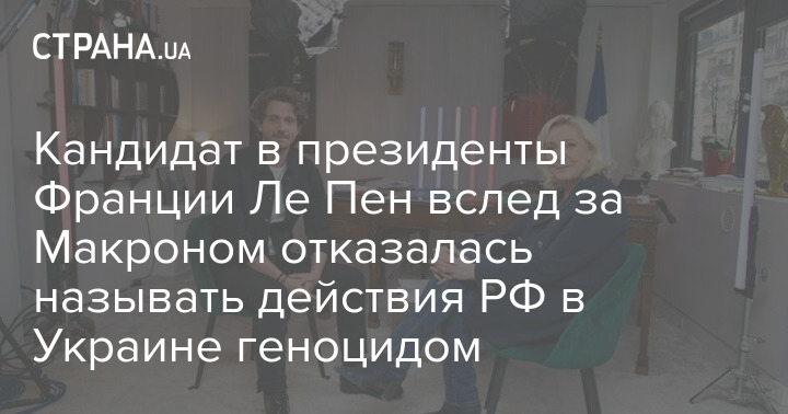 Кандидат в президенты Франции Марин Ле Пен вслед за своим конкурентом на выборах Эммануэлем Макроном отказалась называть войну в Украине геноцидом.