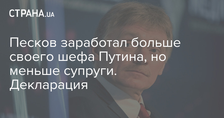 Пресс-секретарь Владимира Путина Дмитрий Песков заработал за год больше, чем президент России, но в 15 раз меньше своей жены.