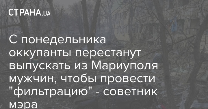 Советник мэра Мариуполя Петр Андрющенко заявил, что российские оккупанты с понедельника, 18 апреля, намерены закрыть город на въезд-выезд, чтобы потом провести фильтрацию оставшихся в нем мужчин.