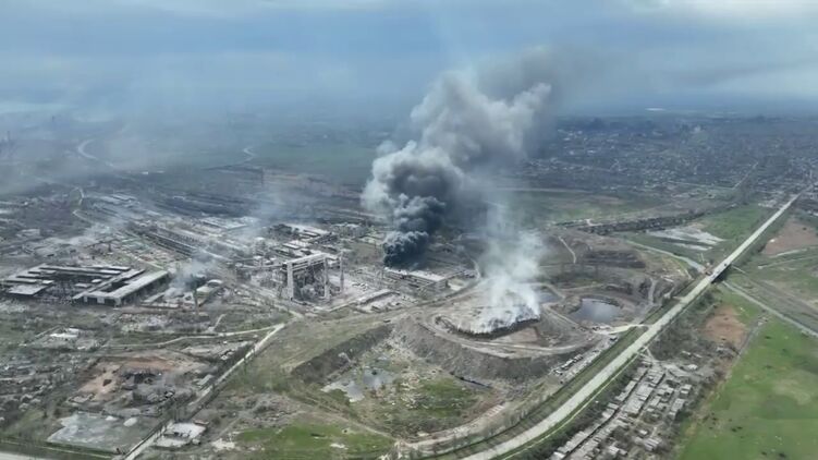 В сети появилось видео ударов по металлургическому комбинату в Мариуполе "Азовсталь".