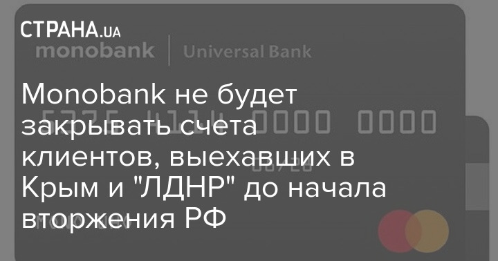Украинский онлайн-банк Monobank не будет прекращать обслуживание и закрывать счета клиентов, выехавших до 24 февраля в Крым и на территорию неподконтрольных частей Донецкой и Луганской областей.