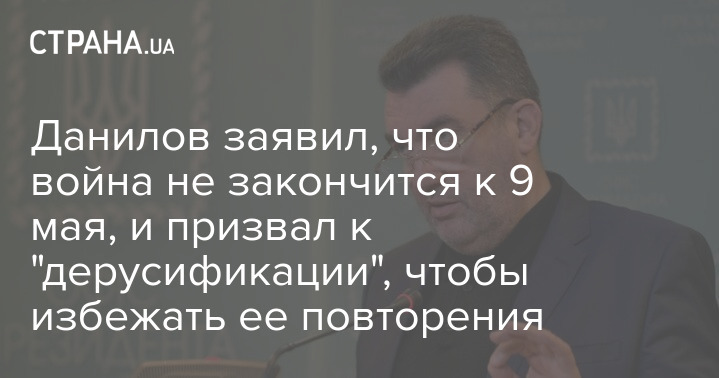 Секретарь СНБО Алексей Данилов заявил, что по его мнению, война в Украине не закончится 9 мая. Также он призвал к "дерусификации" Украины, чтобы избежать повторения войны с РФ в будущем.