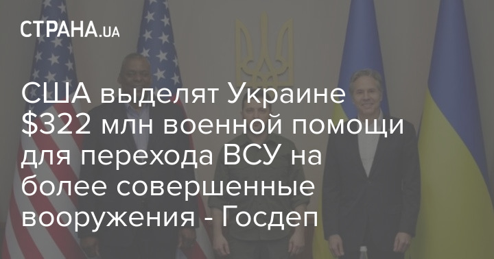 США выделят Украине $322 млн военной помощи для перехода ВСУ на более совершенные вооружения - Госдеп