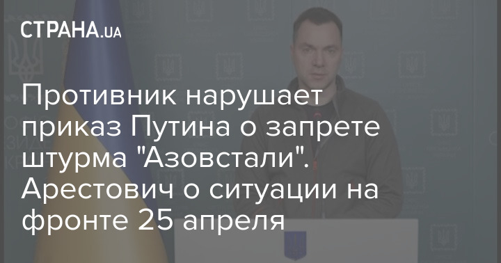 Противник нарушает приказ Путина о запрете штурма "Азовстали". Арестович о ситуации на фронте 25 апреля