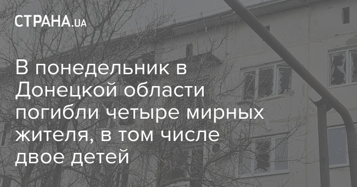 В понедельник в Донецкой области погибли четыре мирных жителя, в том числе двое детей