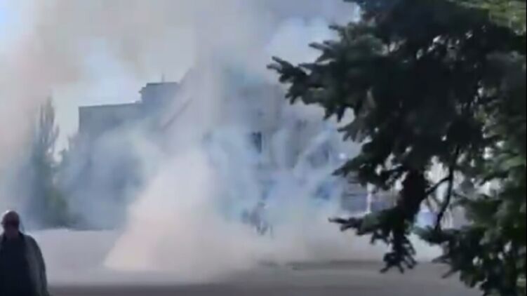 На втором видео, которое публикуют в сети, виден распыленный над площадью газ.