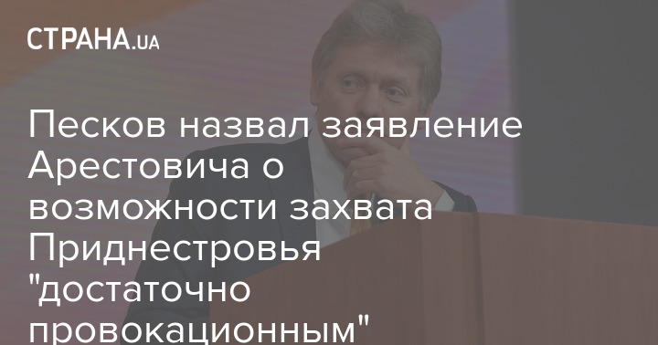 Он прокомментировал слова советника главы ОП Алексея Арестовича, который заявил, что Украина может захватить Приднестровье "по щелчку пальцев" (если об этом попросит Молдова). На это Песков заявил: "Достаточно провокационно".