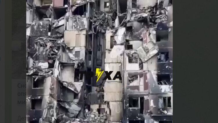 Появилось видео последствий обстрела Харькова. Полностью разрушена жилая многоэтажка