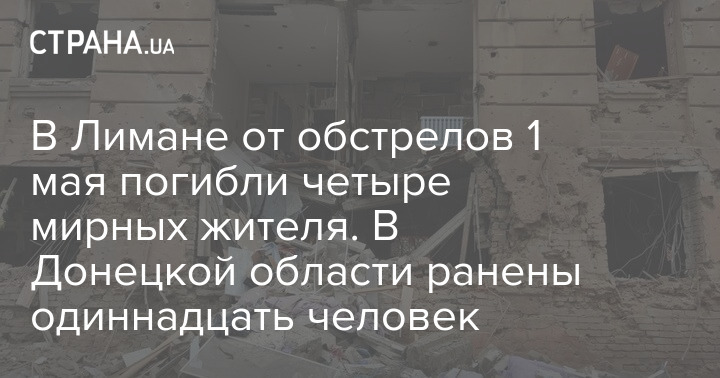"1 мая от российских обстрелов на Донетчине погибли 4 мирных жителя – все в Лимане. Ранения получили ещё 11 человек: 7 в Лимане, 3 во Владимировке и 1 в Яровой. Кроме того, в Бахмутской громаде один человек умер от ранений, полученных на Луганщине. Ещё одному человеку из Луганщины там была оказана медицинская помощь", - говорится в сообщении.