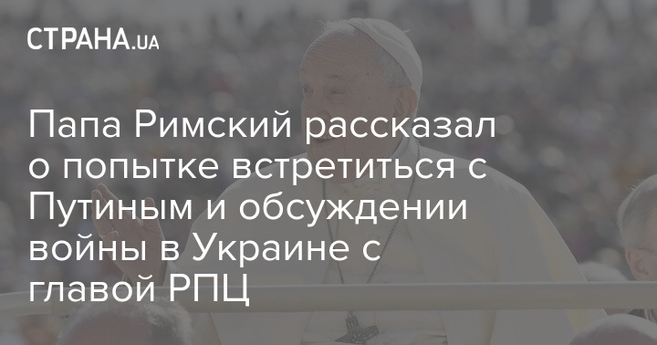 Папа Римский Франциск просил о встрече с Владимиром Путиным в Москве, но не получил ответа. Он поговорил лишь с главой Русской православной церкви Патриархом Кириллом и тот ему 20 минут объяснял, зачем Москва устроила войну.