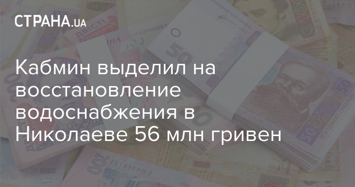 Кабинет министров выделил из резервного фонда государственного бюджета 56 млн гривен на восстановление водоснабжения в городе Николаев.