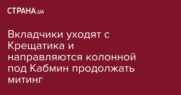 Вкладчики уходят с Крещатика и направляются колонной под Кабмин продолжать митинг