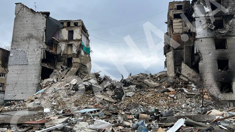В результате обстрелов в Бородянке полностью разрушено 10 многоэтажных домов.