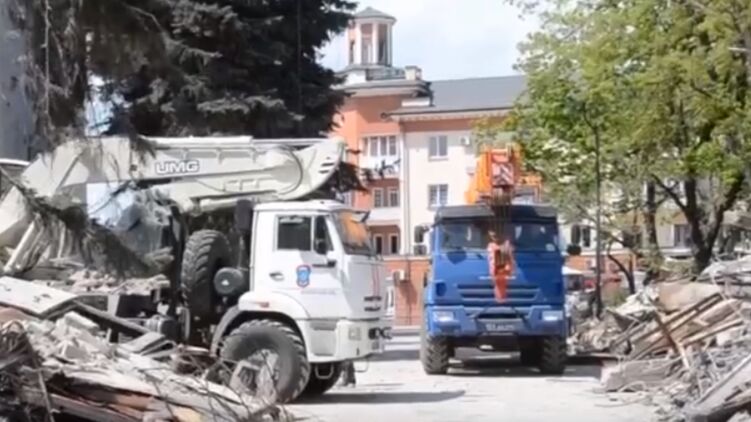 "Мариуполь. Оккупанты продолжают подготовку к параду, разбирают завалы в центре города, в частности - драмтеатра", - написал Андрющенко.