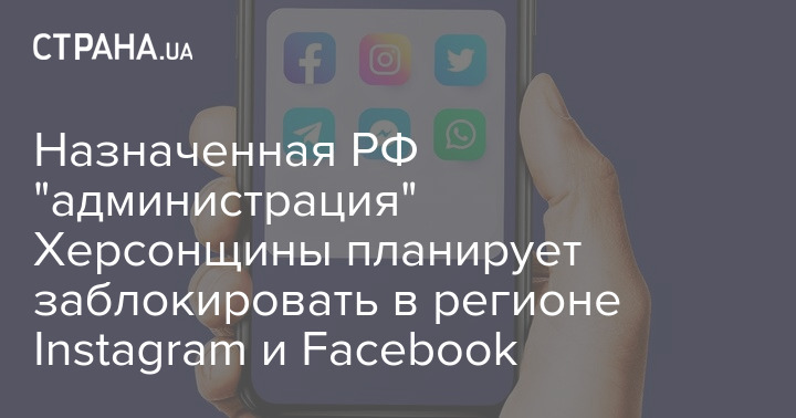 Назначенная Россией "администрация" Херсонской области Украины в ближайшее время закроет доступ к запрещенным в РФ Instagram и Facebook. Об этом сообщает российский "РБК" со ссылкой на "замглавы военно-гражданской администрации Херсонской области" Кирилла Стремоусова.
