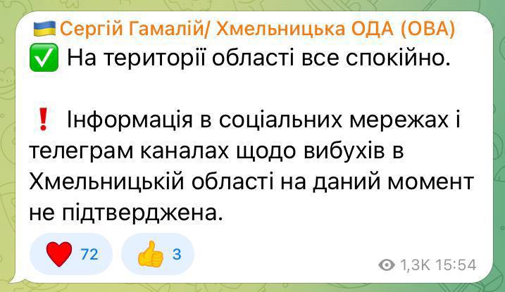 16.02 Хмельницкая обладминистрация не подтверждает сообщения о взрывах в области.