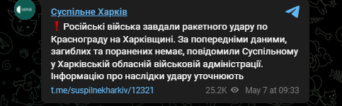 Российские войска нанесли ракетный удар по Краснограду в Харьковской области.