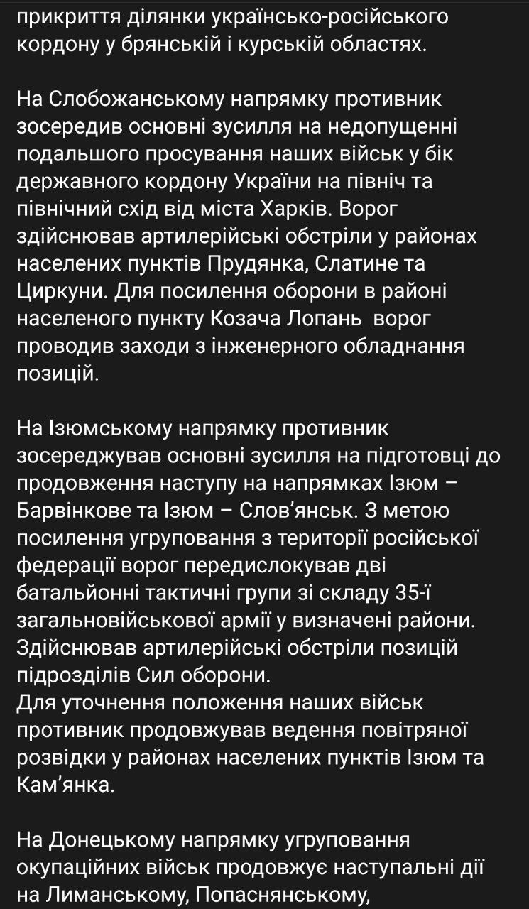 Тем временем в утренней сводке Генштаба сообщается о небольшом успехе РФ на Донбассе. К северу от Лимана противник захватил окраины села Шандриголово.