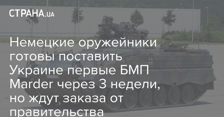Немецкая оружейная компания Rheinmetall готова поставить первые БМП Marder Украине через три недели. Об этом руководитель Rheinmetall Армин Паппергер сказал в интервью Süddeutsche Zeitung.