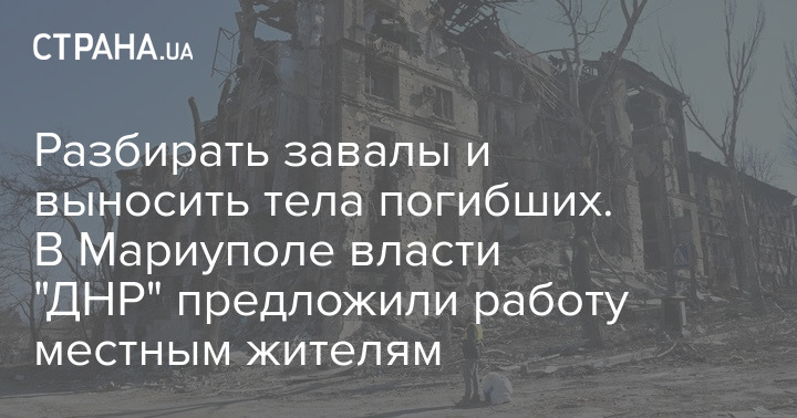 Остальным предлагают работу по благоустройству, разборке завалов и выносу тел погибших - обещают платить от 10 до 32 тысяч рублей (от 4 337 до 14 258 гривен).