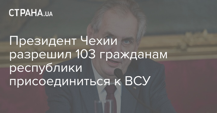Президент Чехии Милош Земан разрешил 103 гражданам республики присоединиться к ВСУ.