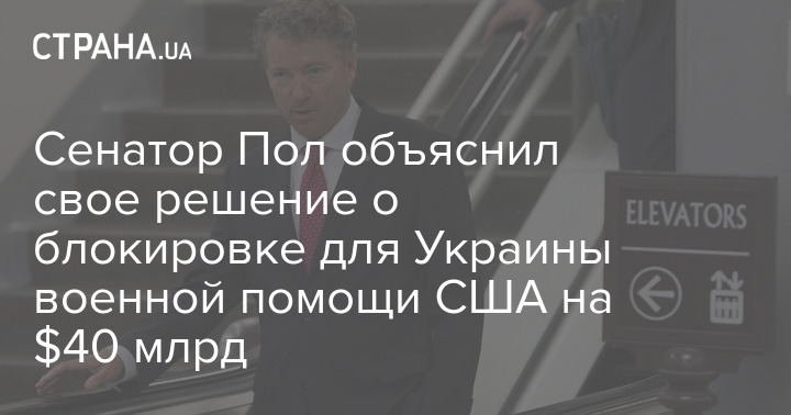 Сенатор Пол объяснил свое решение о блокировке для Украины военной помощи США на $40 млрд