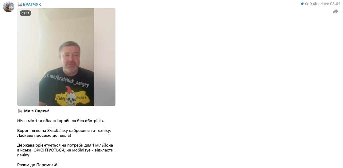 Об этом заявил спикер Одесской областной ВГА Сергей Братчук в своем видеообращении.