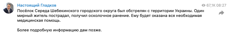Это уже не первый обстрел Белгородской области. Так, 11 мая Гладков заявлял, что обстреляно село Солохи Белгородского района. По его информации, тогда один человек погиб (точнее, умер в машине скорой помощи), трое были ранены.