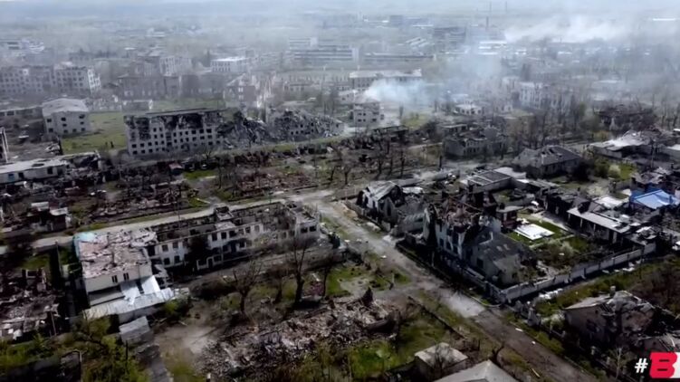 Видео снято с дрона с высоты птичьего полета. На нем видно, что почти все дома повреждены. Многие просто уничтожены до основания, у многих - нет части крыши или выбиты окна. На видео видно, что после некоторых ударов еще даже не потухли пожары.