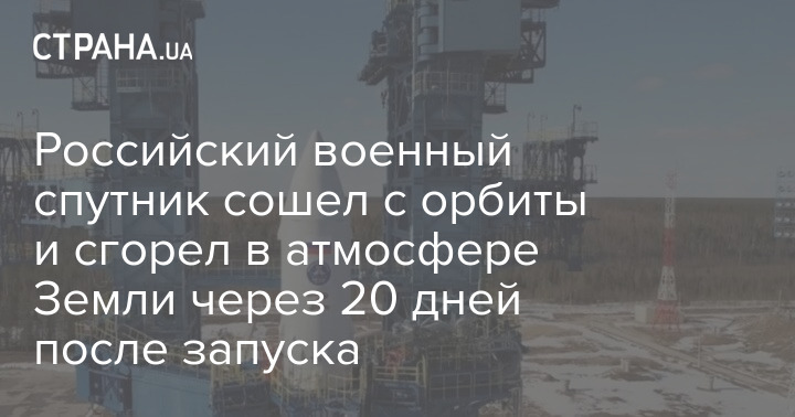 Российский военный спутник сошел с орбиты и сгорел в атмосфере Земли через 20 дней после запуска
