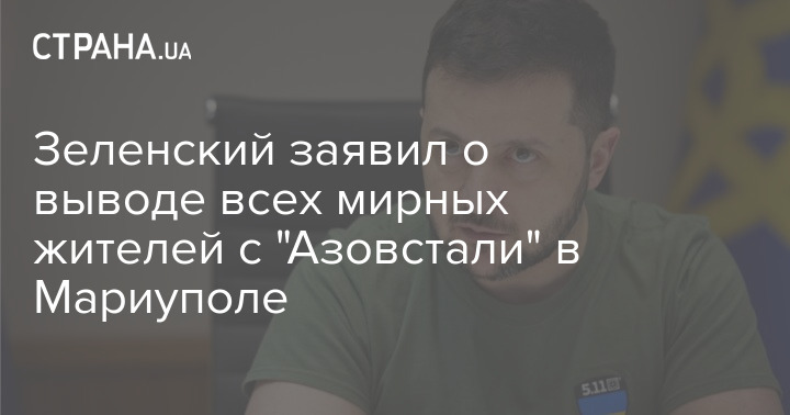 Зеленский заявил о выводе всех мирных жителей с "Азовстали" в Мариуполе