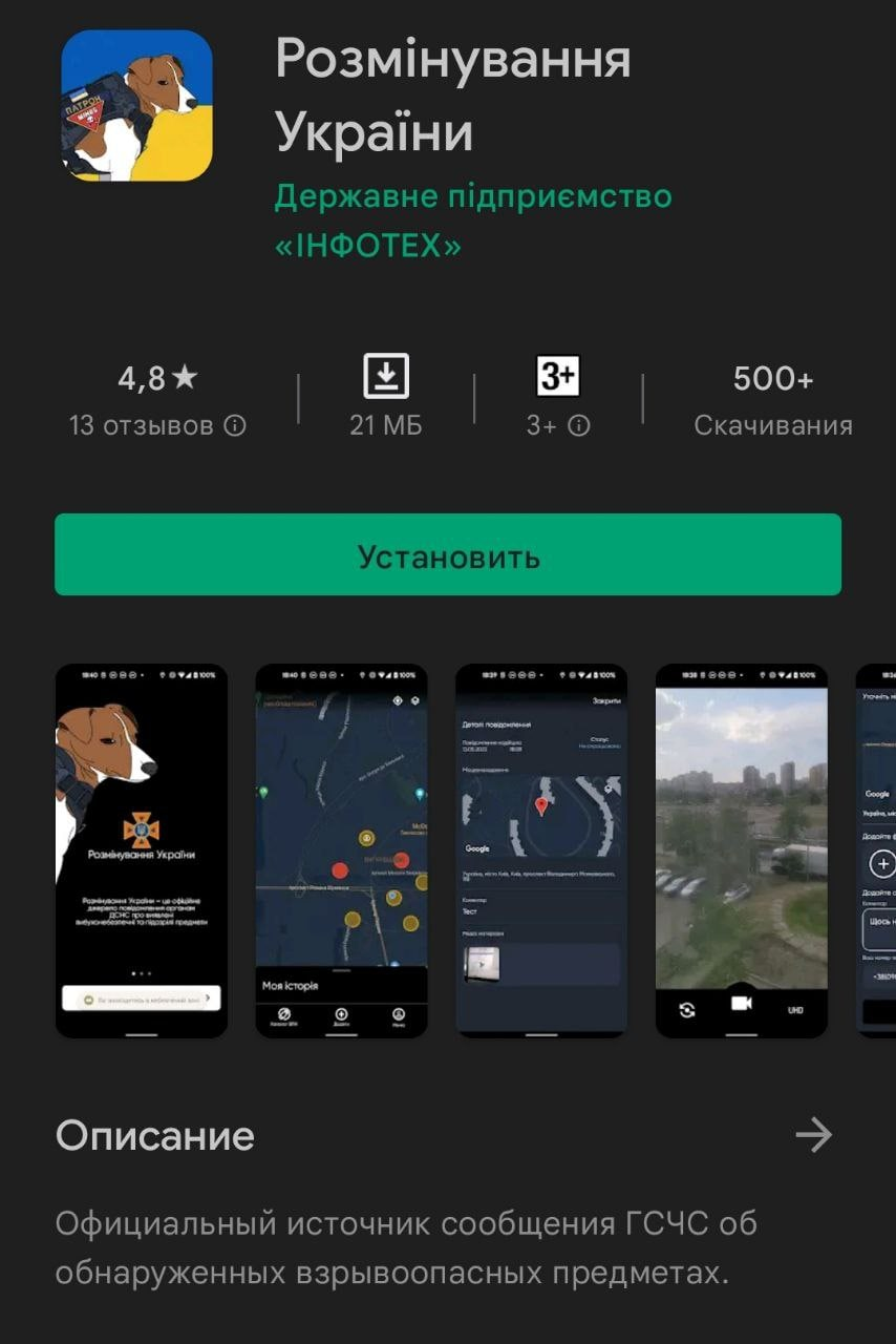 Приложение называется "Разминирование Украины" и позволяет сообщить о взрывоопасных предметах, которые надо обезвредить.