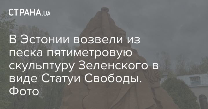 В эстонском городе Тырва возвели пятиметровую скульптуру из песка, которая изображает президента Украины Владимира Зеленского в виде нью-йоркской Статуи Свободы.