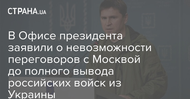 "Российские силы должны покинуть страну, и после этого станет возможным возобновление мирного процесса", - сказал Подоляк, назвав призывы к немедленному прекращению огня "очень странными".