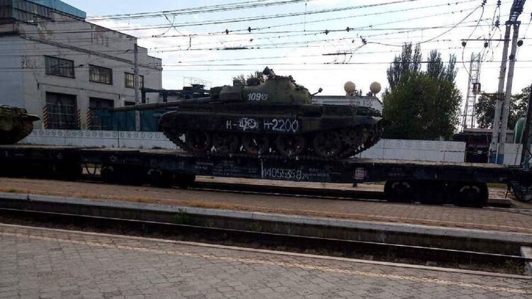 В Мелитополе Запорожской области обнаружили эшелон с танками Т-62, заснятый на видео еще на территории России.