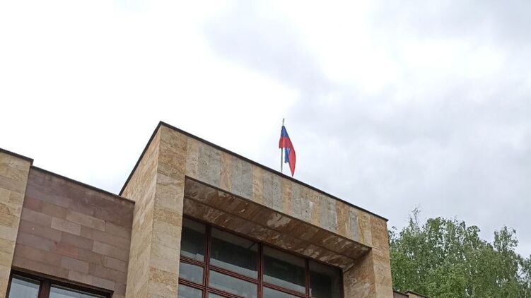 В Светлодарске Донецкой области украинские флаги заменили российскими и советскими. Соответствующие фото появились в сети.