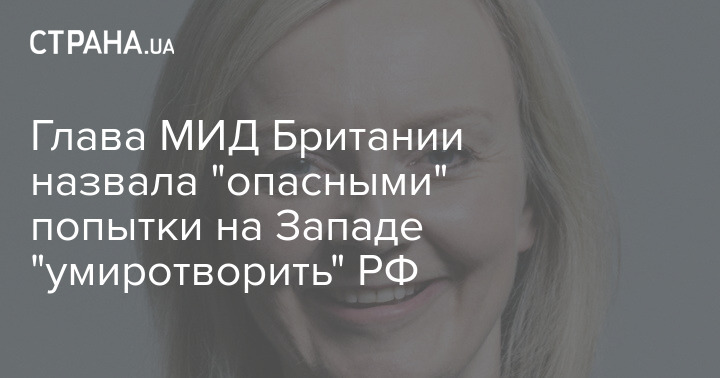 Министр иностранных дел Великобритании Лиз Трасс считает опасными попытки "умиротворить" РФ. Она считает, что нельзя отказаться от цели добиться поражения России в войне.