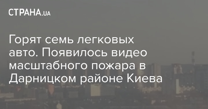 Горят семь легковых авто. Появилось видео масштабного пожара в Дарницком районе Киева