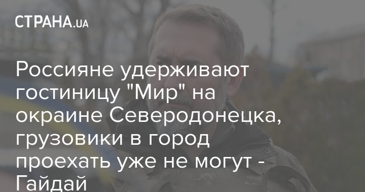 Луганский губернатор Сергей Гайдай опровергает информацию, что российские войска удалось выбить из гостиницы "Мир" на окраине города. По его данным, враг понес огромные потери, но остается в здании.
