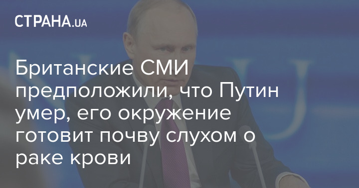 Британские СМИ предположили, что Путин умер, его окружение готовит почву слухом о раке крови