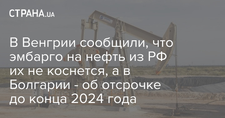 В Венгрии сообщили, что эмбарго на нефть из РФ их не коснется, а в Болгарии - об отсрочке до конца 2024 года