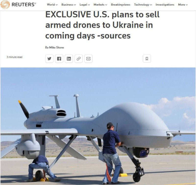 23.18 США планируют продать Украине четыре беспилотника «MQ-1C Gray Eagle», которые могут быть вооружены ракетами Hellfire.