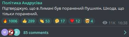 О ранении, в частности, написал советник главы МВД Виктор Андрусив. Он заявил, что Пушилин был ранен в Лимане.