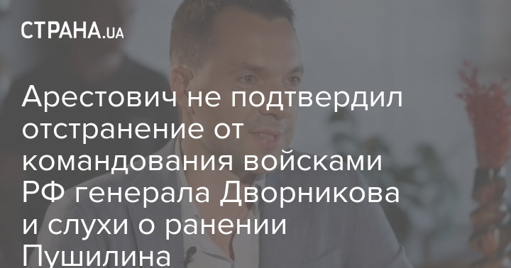 Советник главы Офиса президента Алексей Арестович заявил, что не может подтвердить отстранения от командования российской группировкой в Украине Александра Дворникова.