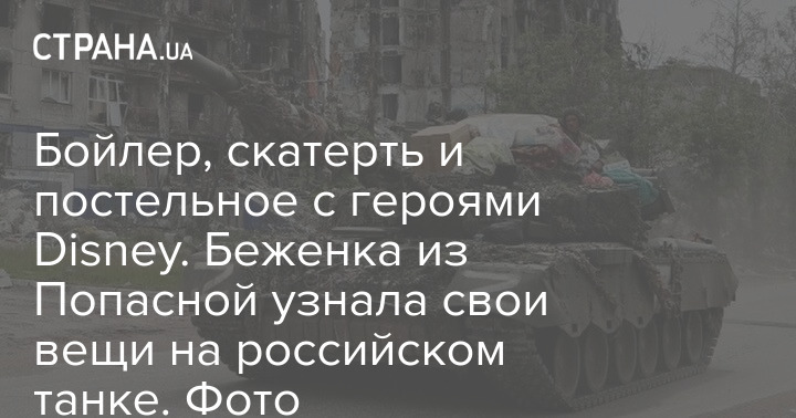 Жительница города Попасная Луганской области Алина Коренюк, которая из-за войны была вынуждена бежать из города за границу, опознала вещи, которые она оставила дома, на фотографии российского танка, везущего награбленное. Об этом пишет BBC.
