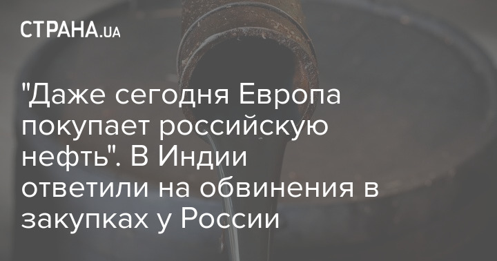 Министр иностранных дел Индии Субраманьям Джайшанкар отверг обвинения в адрес его страны из-за закупок российской нефти, поскольку Европа делает то же самое.