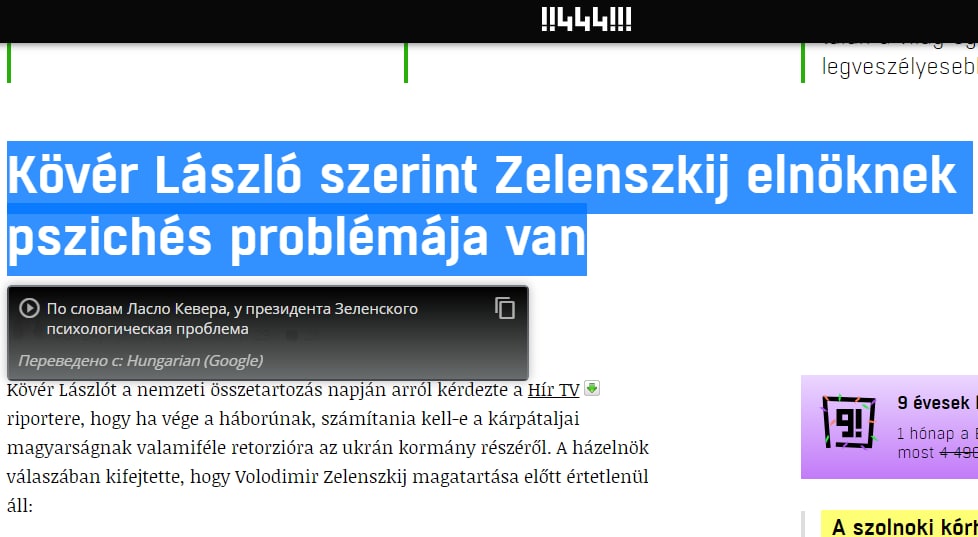 07:30 Спикер парламента Венгрии Ласло Кевер раскритиковал Владимира Зеленского и заявил, что у него есть "психическая проблема".